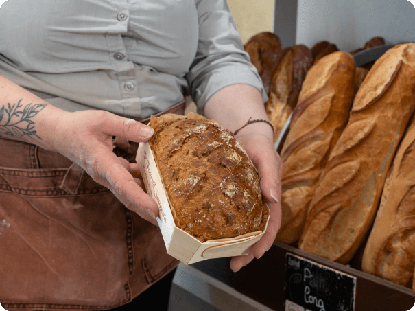 Tous nos pains sont fabriqués avec des farines sélectionnées avec soin auprès de notre meunier, la Minoterie Bigallet basée en Saône-et-Loire. Nous travaillons également avec le Moulin de Paris, et la Minoterie Dornier.