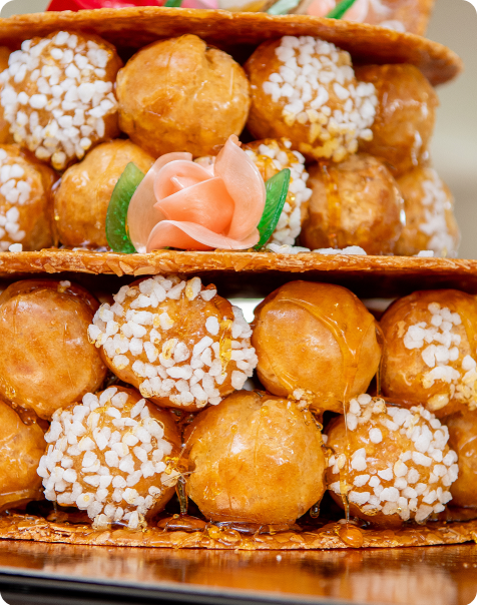 La pièce montée est une tradition pâtissière indémodable qui couronne le dessert lors d’une fête aussi importante qu’un mariage ou une communion. Cet assemblage de choux garnis de crème pâtissière et enrobés de caramel symbolise la gourmandise et le plaisir partagé. Au Fournil Saugeais nous concevons des pièces montées à la demande, signées pour un anniversaire, un mariage, ou tout autre événement. Communiquez-nous le nombre de convives, nous nous occupons du reste.